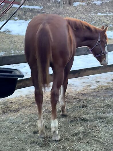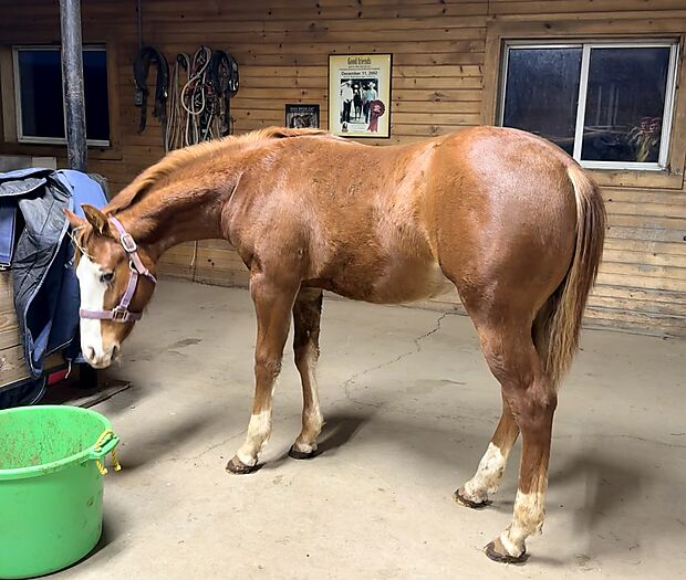 Nice, correct flashy 2025 colt. His sire , No Smoking Required, had several offspring in the 2025 NRHA Futurity . He should be a big horse. His dam , a daughter of Smooth As A Cat is out of a daughter of Reminic. This is her first foal.