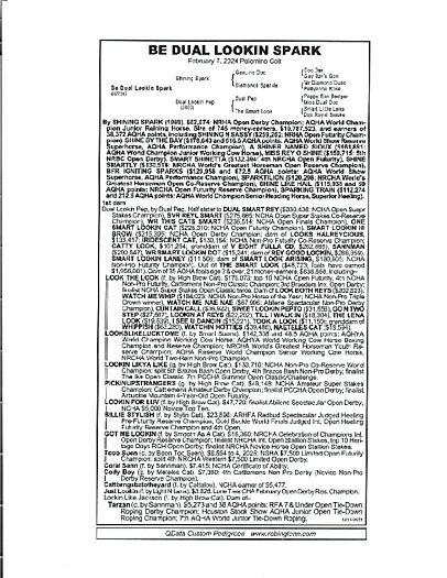 BE Dual Lookin Spark 2024 Palomino Stallion Breed and raised by Blue Eagle Ranch. sired by 10-million-dollar AQHA, NRCHA, NRHA, and PHBA Hall of Fame stallion Shining Spark. Be Dual Lookin Spark dam Dual Lookin Pep is the top producing Daughter of the (The Smart Look $1,956,001). Dual Lookin Pep (Dual Pep x The Smart Look) has produced 21 offspring that have earned $638,558. You will not find a better breed Shining Spark stallion with looks to go with. 6 Panel negative, Clean X-rays. One of a kind. Beautiful own son of Shining Spark out of top producing NCHA Dam.