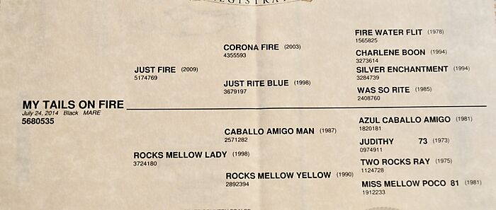 My Tails On Fire is quiet and easy going. Broke to ride. She is an own daughter of the great Just Fire - AQHA point earner in Open Heading and Open Heeling! Just Fire is the Sire of the 2022 AQHA Open Breakaway Champion, BSQ Just Lucky Fire! My Tails On Fire is due end of May to High Brow Bad Cat by the legend himself, High Brow Cat! PorterQuarterHorses com