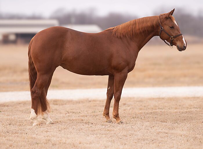 𝐍𝐢𝐜𝐞 𝐅𝐨𝐫 𝐖𝐡𝐚𝐭 is a 2022 Sorrel Mare by Metallic Rebel x Sweet Lil Nurse (Sweet Lil Pepto). She stands 14.2 and is double registered AQHA/APHA. She has an excellent foundation and a great mindset. She has been in training with Tate Kirchenschlager for 6 months. This mare has the potential to develop into a quality show horse or a competitive jackpot horse in the future. She is easy to handle, and very gentle. Very well broke and pleasant to be around. 6 Panel N/Hrd.