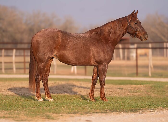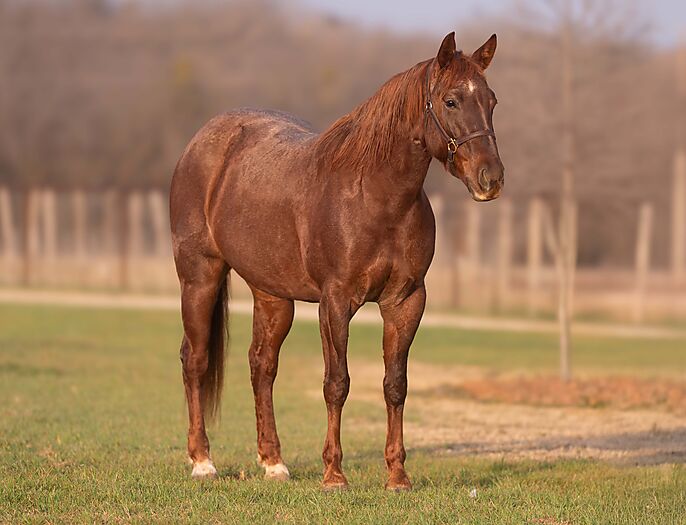 That Mitch Is Fine is a 2022 Red Roan Mare by Call Me Mitch x Fine Chili Starlight (Light N Fine). She stands 15.1 hands and is 6 Panel N/N. She was started as a Cow Horse and transitioned to roping. She has been in training with Cade Rice for 6 months. “Stitch” is feely, well balanced, has a huge stop, and really wants to do a good job for you. She is ready to be finished up in whatever direction you would like.