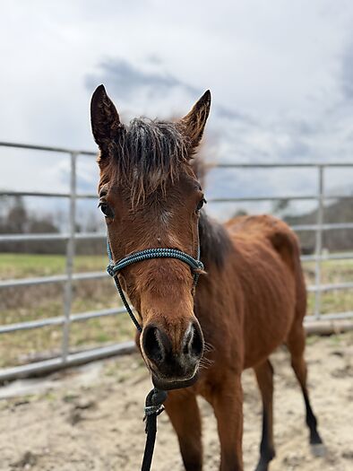 A Boojee Gal is a 6 panel clean 2025 filly that is feely, bright, and very curious. She sells halter broke with experience tying and trailering. UTD on vaccines and will stand for the farrier. She is not over handled but is safe enough to haul on long trips.