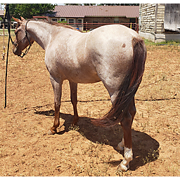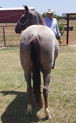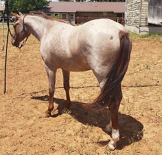 Good looking cow bred red roan filly. Has been handled a lot. Very gentle, stands for farrier, loads and hauls quietly. Ready to start in any direction.