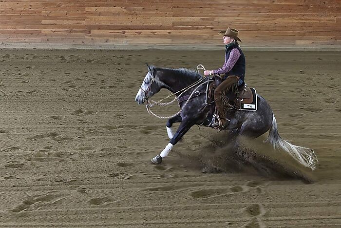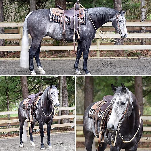 This fancy grey gelding is athletic, very pretty loper with a big stop! Very easy going and good for youth or amateur rider. Greets you with a nicker every day!