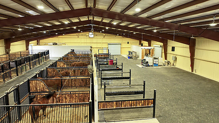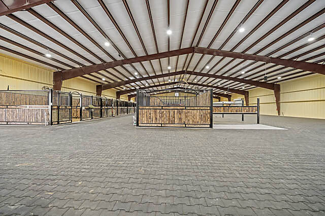Facilities: Beginning in 2021, three large facilities were added to the property, adding to the pre- existing 22 – 12’ x 12’ stalls, 60’ round pen and eurosizer, in order to create this one-of-a- kind equestrian center. The new facilities include a 14-stall rehab and conditioning barn with a veterinary office and a full surgical suite. This barn houses all of the therapy equipment including an AquaPacer, hot and cold saltwater spa, and theraplate. All of the stalls in the new facilities are 14’ x 14’ with StableComfort mattresses to offer ultimate care and comfort for the horses boarded within. In addition, there is a 46-stall boarding barn with an attached 135’ x 225’ covered arena, a 7-horse Priefert panel walker and an 80-foot round pen. Both of the new stable barns incorporate 1 ¾” rubber pavers in the aisles offering a quiet, peaceful barn. Finally, there is a 15-stall breeding barn with three stallion stalls which houses all facilities a breeder needs on-site, including an AI lab. Overall, 97 horses can be stabled indoors within the over 100,000 sq/ft of barn space.
