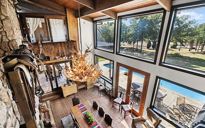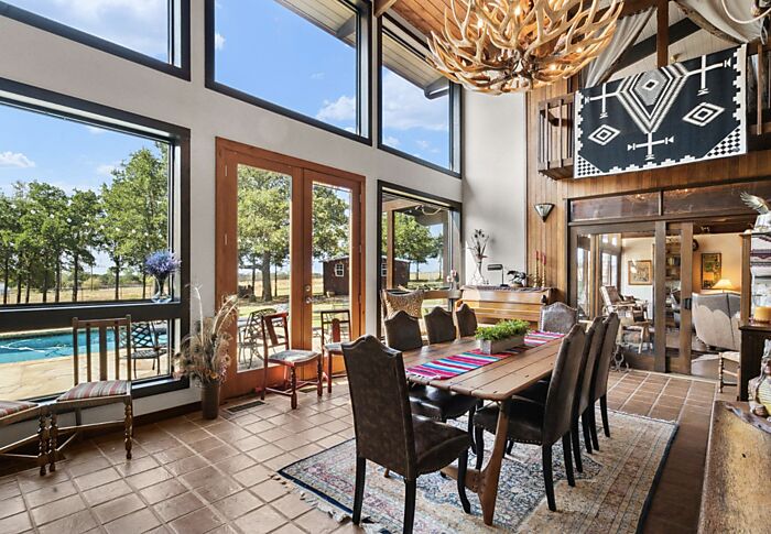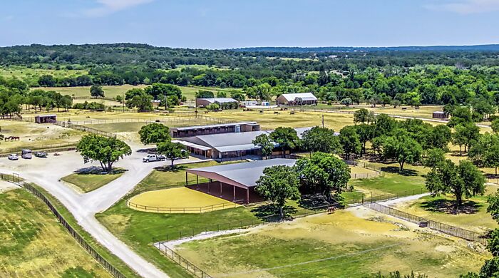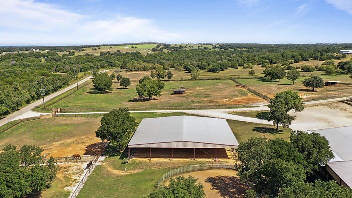 One of Parker Counties premier show horse training facilities on almost 36 acres of sandy loam. Completely fenced and cross fenced in mostly pipe and horse safe materials. Show barn and additional stall barn with 25 stalls total. Show barn features, covered walker, office with full bath, double was rack, double door tack room, half bath, lockers, second office and tons of storage. There are two apartments attached, 2 bed, 2 bath and a 2 bed, one bath. The main home, architecturally known as an Acorn Deck Home and is 3,696 sq.ft. 3 bedroom, 4 full bath. Perfectly placed in a position to capture natural light and help with cutting utility bills. The spacious bedrooms are all upper level as well as three baths. Downstairs is home to the huge great room and soring ceilings of the dining room. Kitchen is amazing and completely redone with brick floors, induction cooktop, double oven, large breakfast area and walk-in pantry. There is a large game room, full bath and laundry on main level.