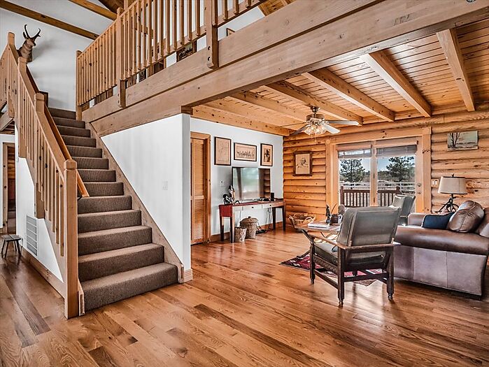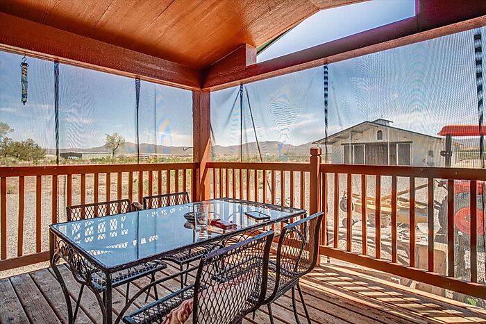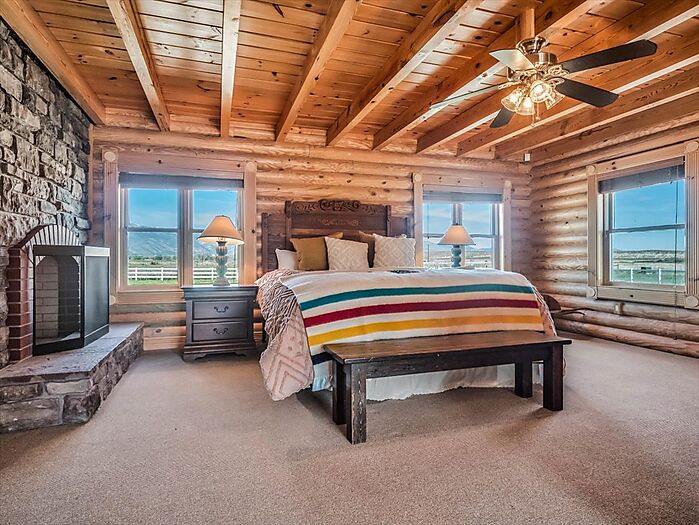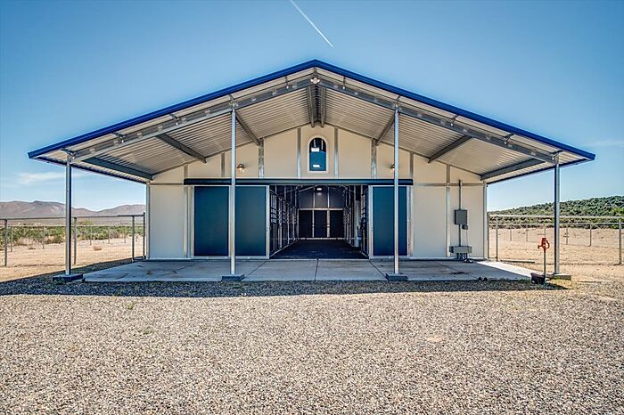 There is a concrete RV pad with water and sewer dump available at the main house. The 6 car plus shop/garage/workshop can house all of your toys and then some. Constructed with a 12ft and a 16ft roll up door, house your RV or horse trailer all year around. The home is wired with a Generac generator. Added to the property is a 3-bedroom, 2-bathroom log sided, personal property, manufactured home with brand new carpet. It does sit on a permanent foundation, it's perfect for guests, in-laws, a caretaker or Airbnb. The brand new, 8 stall, raised aisle MD barn, complete with wash rack, hot and cold water, sink, electricity, Nelson waterers, enclosed tack/feed room and completely matted, is ready for your 4-legged friends. One stall wall can be moved to create a foaling stall. Around the barn is fenced and ready to use! Irrigate your pastures, grow and produce your own feed for a self-sustaining farm. Water storage rights convey. Graze your livestock in the cross fenced 7-acre pasture where you can view them from your front window. This creates a little heaven on earth for livestock fanciers! Kubota Tractor and John Deere mower available outside of escrow as personal property.