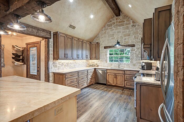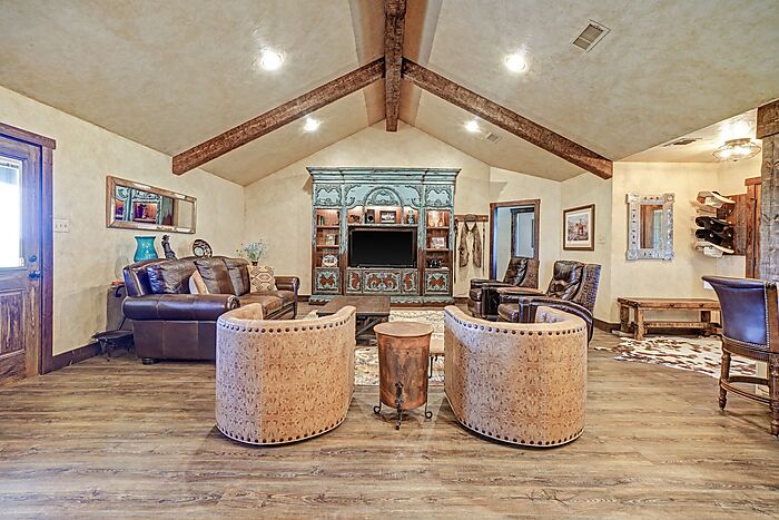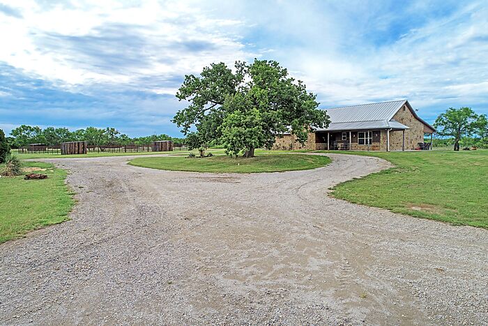 Introducing this remarkable horse property, spanning 14.5 acres with agricultural exemption, mere minutes from town. The 3 bedroom 2 bathroom rock home just under 2000 sqft showcases a renovated custom kitchen with Austin Stone, rustic wood beams and Quartz countertops. Outside, the property features a 6 stall barn with oversized stalls and automatic waters, a shop with pull-through covered trailer and motorhome parking with 50 and 30 amp plug-ins. Additionally, there are 2 turnouts with shelters and a large pasture, exceeding 7 acres, with a shelter and attached catch pen. Plenty of room to add an arena or pool and the exceptional water well is just the cherry on top. Mild restrictions to keep properties looking nice.