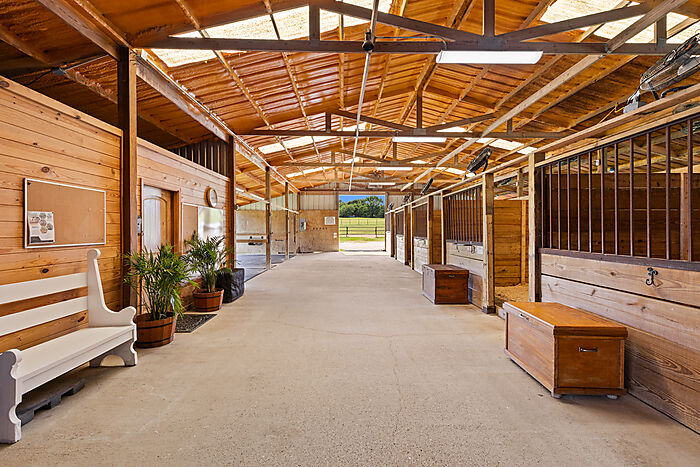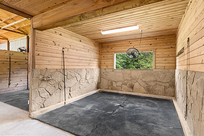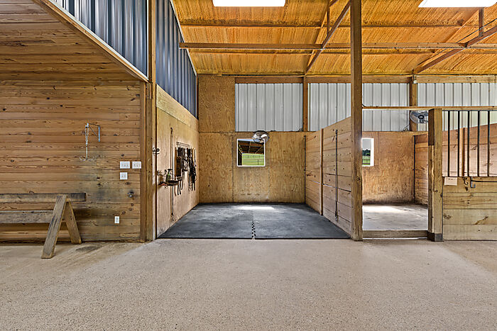 For the equestrian enthusiast or professional trainer, the facilities are unmatched. The centerpiece is a beautiful barn that has undergone extensive renovation and includes a 1,920±SF unfinished second story—perfect for future living quarters, office space, or training amenities. In total, the barn offers 24 well-ventilated stalls, two tack rooms, a stone wash rack, laundry room, bathroom, and multiple grooming areas, all designed for both comfort and efficiency. Two temperature-controlled office spaces provide the perfect command center for managing operations.