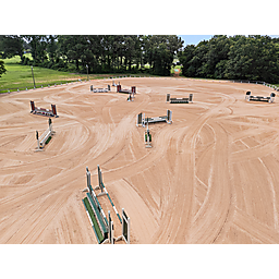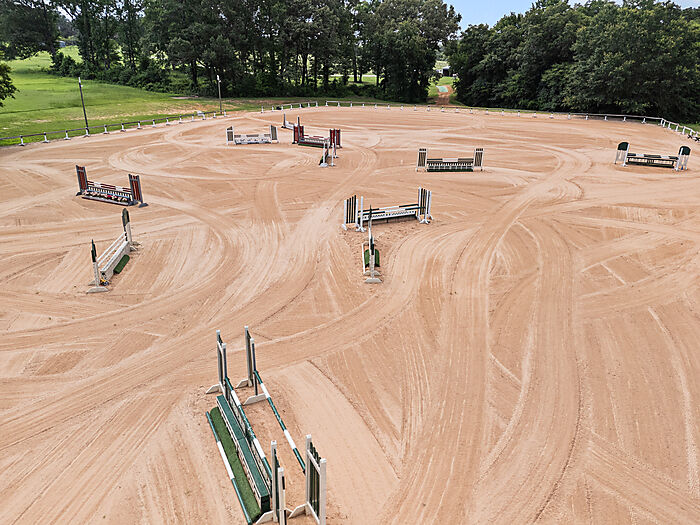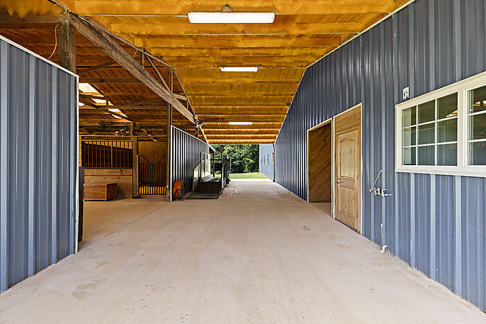 A wide path meanders from the barn through a canopy of trees to a professionally graded, lit150x300’ outdoor arena—ideal for training, clinics, or events. With the thoughtful mix of stalls, turnouts, and riding space, the layout supports flexible management whether you're operating a full-scale boarding facility or simply rotating personal horses.