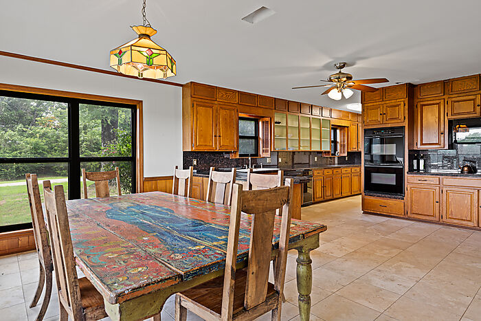 This extraordinary equestrian property encompasses approximately 50± AC of gently rolling terrain. The centerpiece is a sprawling 4,004± SF ranch-style home, situated at the high point of the property to capture panoramic views of the surrounding pastures, turnouts and stables. With 5 bedrooms and 3.5 bathrooms, the home’s open-concept layout features massive picture windows and French doors that flood the living areas with natural light and invite you to step outside and soak in the view.