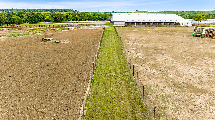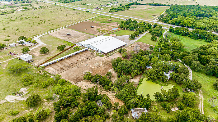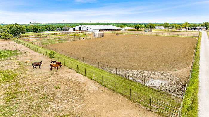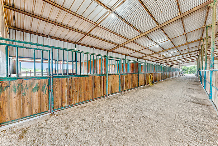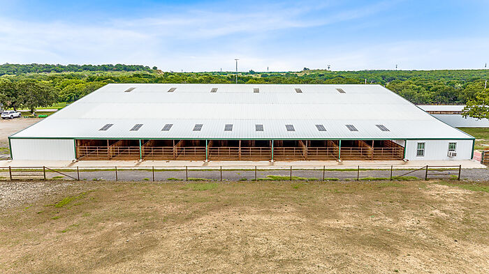 | LEASE PURCHASE OPTION! Well maintained horse facility. Arena floor is 170x90, and the entire building is 170x170 including 10 show stalls with covered runs that have a cut gate creating 20 covered stalls. You will find two storage rooms and a bathroom in the northwest corner of the building, as well as a heated and cooled dedicated wash room and tack room combo to create a highly-functional space. Fenced and cross fenced to create several turn outs, with a new 275 x 160 roping arena and 275 x 30 calf lane with return alley & stripping chute. 11 oversized pens with sheds conveniently located behind the arena with automatic waterers and oversized feed bunks. This facility has been meticulously planned to create the ultimate property for avid horse people. Only one hour to Will Rogers and 45 minutes to Weatherford. a Very nice 1 bedroom, 1 bath apartment built in 2023 is in the main structure. |