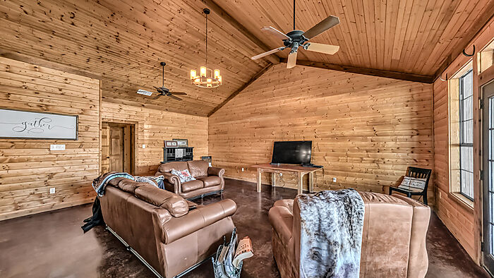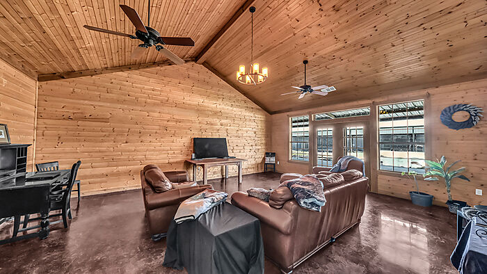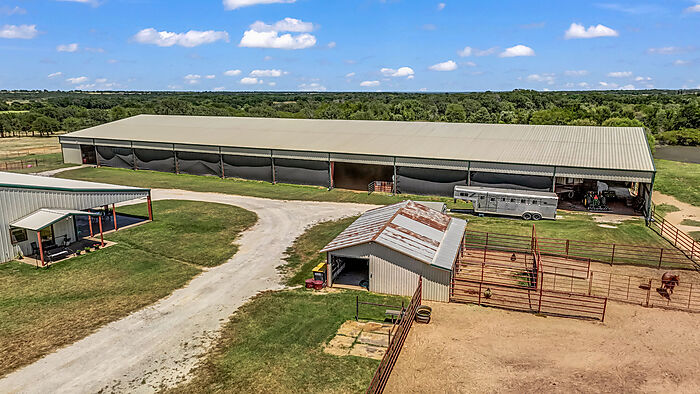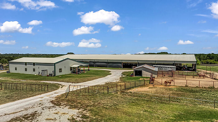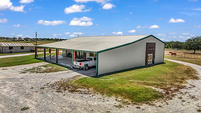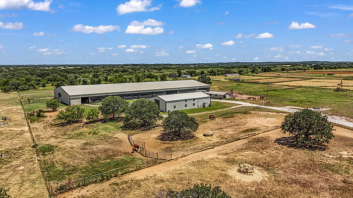 Peaceful country living awaits just north of Lipan at this incredible horse-ready property. The 3,200 sq ft barndominium offers 4 bedrooms, 3 bathrooms, a dedicated office, a full laundry room with its own bath, and walk-in attic storage. Inside, you’ll find spray foam insulation, two AC units, and a spacious 1,000 sq ft bonus room—nearly complete—featuring an electric fireplace with a mounted TV above and a trophy ledge. Step outside to enjoy a large covered patio overlooking the impressive 120x300 covered arena and barn, which includes an announcer's booth, roping chute, return alley, two double stalls, three additional stalls with outside runs, and water access. Shade screens along the arena make year-round riding comfortable. A separate septic system sits next to the RV hookups, and two tanks at the back of the property are currently holding water. With a two-car carport, mature trees for shade, and sandy loam soil throughout, this turnkey property is ready for your horses and your dreams. The Seller will consider a $10,000 to finish out the bonus room.