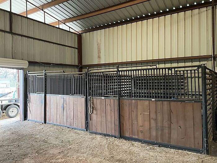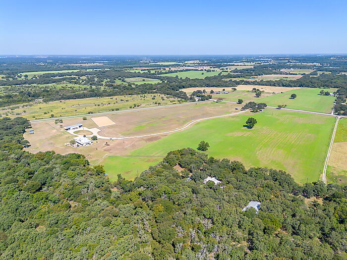 The estate begins with a captivating arrival experience. A gated entrance opens to a picturesque tree-lined drive stretching a quarter mile, weaving between two lush Coastal Bermuda hay pastures totaling more than 40 acres. Whether you envision baling your own hay crop, running cattle, or creating state-of-the-art equine facilities, this property provides the perfect canvas to paint your Texas dream ranch.