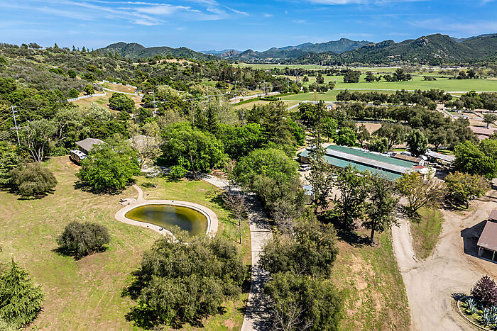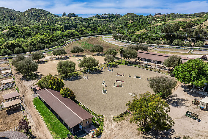 Experience 1812 W Potrero Road, operating as Shelburne Farms, an iconic & income producing Equestrian Facility in the heart of Hidden Valley. This rare offering sits minutes from Lake Sherwood and Sherwood Country Club, with easy access to the shopping, dining, and services of Westlake Village and a short scenic drive to the beaches of Malibu. The property is designed for serious training and smooth daily operations, blending large scale infrastructure with the timeless beauty of rolling hills and an open sky. The equestrian facilities include a main barn with 33 stalls, 5 of which are 12 x16, and 3 of those with in and out access. A secondary barn provides 23 stalls, the lower barn offers 8 stalls, and the hay barn includes 4 additional stalls for overflow, creating a total of 68 stalls. Training amenities feature 4 arenas including 2 large arenas, 1 smaller arena near the secondary barn, and 1 overflow arena near the residence. There are 22 turnouts in various sizes with some partial covering, 2 tracks and 1 Eurosizer. The main residence offers approximately 4,130 square feet with 4 bedrooms and 4.5 bathrooms, generous living and dining spaces, a pool and an easy indoor to outdoor flow that is ideal for relaxing after a ride or hosting friends. Two additional staff apartments are integrated within the barns. Set within one of Southern California's most storied Equestrian Enclaves, 1812 W Potrero Road delivers privacy, convenience, and a proven income stream in an exceptionally well equipped training environment. Hidden Valley feels a world apart, offering the rare union of country quiet and coastal convenience, with sweeping scenery, privacy, and generous open space. It is one of Southern California's most coveted settings for horse lovers and nature minded homeowners, where daily life can include morning rides and evenings spent entertaining under the stars. Here, the setting elevates both living and training, supporting a serious equestrian program while providing a warm and welcoming home base. This is a property that rewards both performance and peace. Listed by: Jenna Kaye - #09132772 - Rodeo Realty & Jaime Krupnick - #02139605 - Engel & Volkers |