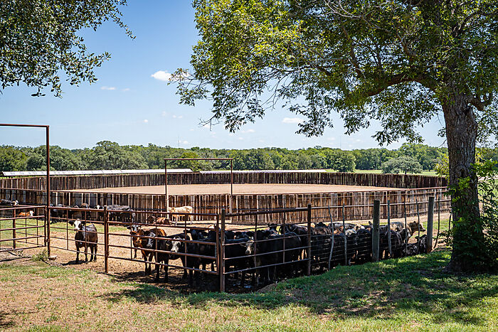 For livestock care, the ranch features 13 lush pastures, each equipped with concrete bunks and water troughs to ensure a nurturing environment for your animals. Four shaded turnout pens add to their comfort, while a processing barn includes a hydraulic chute and sorting and shipping pens, along with a 40-foot scale for efficient management of your herd. This remarkable property is supported by three water wells, ensuring a consistent water supply for all operations. Experience the ideal blend of rural living, top-notch facilities, and endless opportunities at West Navidad Ranch.
