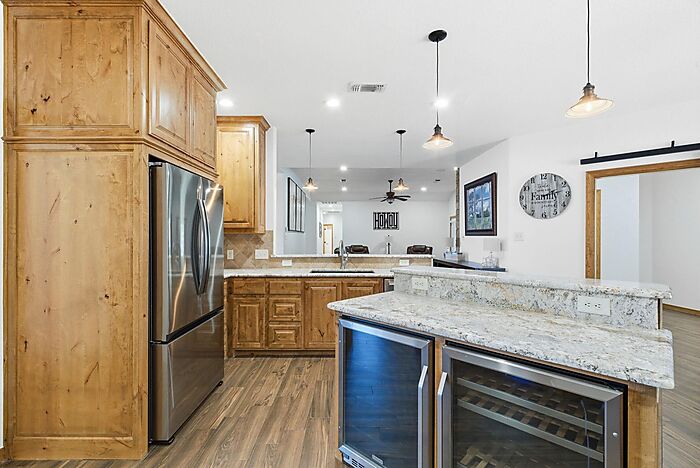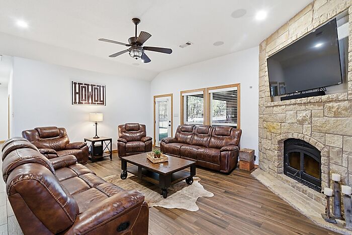 Inside, the Spacious 4-Bedroom, 2.5-Bath Home, You Will Love What This Layout Offers Which Is Versatility and Functionality. The Inviting Living Room Features a Cozy Rock Fireplace. The Expansive Modern Kitchen Is a Chef’s Dream—Equipped With Premium KitchenAid Appliances, a Gas Cooktop, Island With Wine and Beverage Refrigerators, Additional Bar-Top Seating, a Huge Walk-In Pantry, and an Eat-In Dining Area. The Separate Formal Dining Room Provides Space for Gatherings. There Is Also a Large Office With Built-Ins and a Closet That Offers Flexibility as an Additional Living Area, Playroom or Mancave. Retreat to the Primary Suite, Boasting Three Closets, a Japanese Soaking Tub, and a Separate Walk-In Shower. Every Bedroom Has Expansive Windows to View the Natural Wildlife and Trees. The Utility Room Also Serves as a Mud Room With Back Door to the Porch and Includes a Convenient Half Bath.
