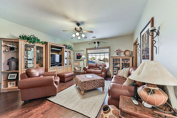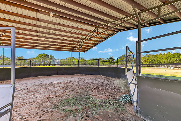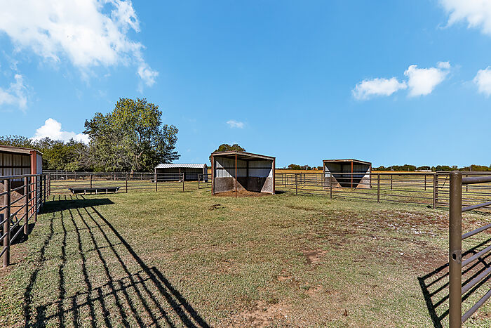 Custom luxury home on 80 acres of improved Bermuda grass, just minutes from Norman and I-35. This elegant property features imported Italian stone tile and beautiful hardwood floors throughout. The gourmet kitchen includes two pantries, dual dishwashers, a Five Star dual-fuel range with six burners and double-sided grill/griddle, pot filler, wine closet and an oversized island—perfect for entertaining and a beautiful, serene office. Spacious and flexible floor plan with multiple living areas, formal dining, home office with fireplace and vaulted ceilings, and a luxurious master suite. Each bedroom offers unique finishes and design details. Equestrian amenities include a 9-stall 40x100 barn with tack room, wash rack w/overhead hose for hot and cold water, stocks; a 1,500 sq ft 2 bed, 2 bath guest house; and a separate 1 bed, 1 bath efficiency apartment. Additional improvements include a 30x75 hay barn, 30x75 heated equipment barn with concrete floor, 30x40 heated/insulated shop, and 6 paddocks—each with water, electric, and run-in sheds; covered, steel, lighted 60' round pen with slanted walls. Aerobic septic and geothermal heating and cooling. Underground lawn sprinkler system. This property offers room for horses, cattle, or hay production. Conveniently located for the competitive horsemen, just minutes to the Oklahoma City Fairgrounds and approximately two hours to the Fort Worth Coliseum just 1.8 miles off I-35 at Goldsby exit on paved road.