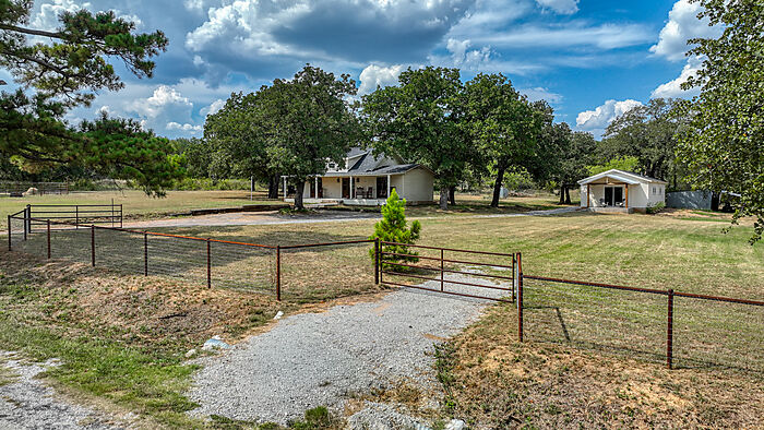 Super Cute modern 2 bedroom 1 bath farmhouse featuring an open living space with a huge quartz kitchen island. A beautifully updated home along with a newly finished 1 bedroom 1 bath guest house situated on 4.149 acres just three miles north of Downtown Mineral Wells, Texas. This home was thoughtfully renovated down to the studs in 2021. Renovations included a new HVAC system, spray foam insulation, new electrical and plumbing throughout and a new roof in 2024. The guest house, which is 450 square feet, is currently an income producing airbnb bringing in 1600 per month.