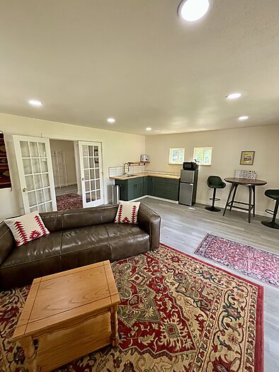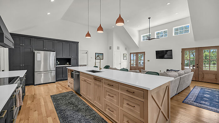 The main home will greet you with three sets of custom French doors, a large front porch, solid Oak floors, 14 foot ceilings, tons of natural light, a huge kitchen with custom White Oak cabinets, quartz countertops and a 36 inch Italian Verona stove.