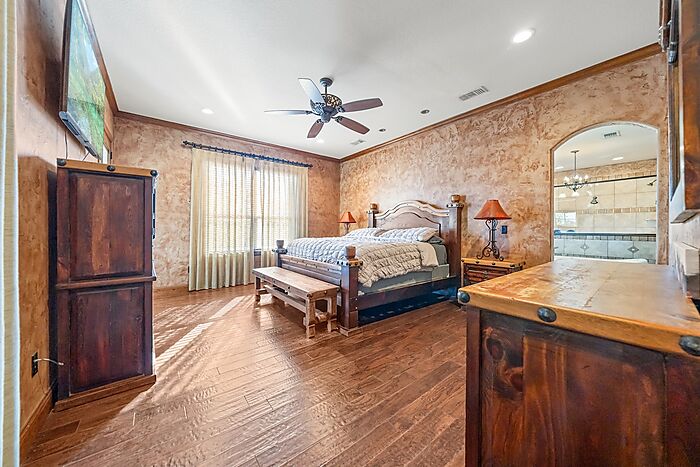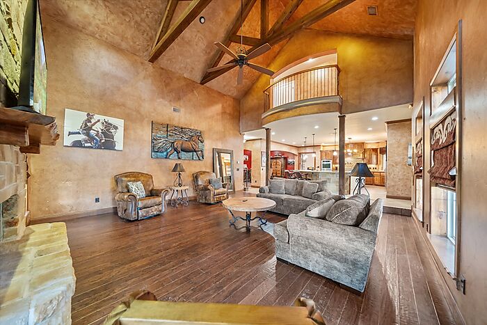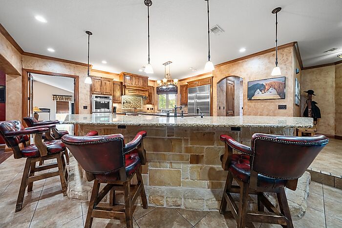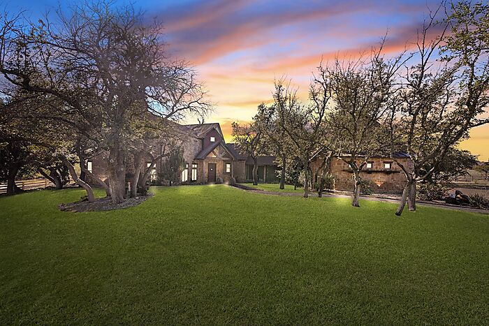 Welcome to a premier 30-acre Western estate where luxury and lifestyle come together seamlessly. Every detail is crafted for those who love the ranch life but appreciate refined comfort. The 4,406 sq ft main home offers four bedrooms, four baths, and warm, open living spaces that flow to a sparkling pool and outdoor retreat. A 1,354 sq ft guesthouse provides privacy for family, friends, or ranch staff. For the true horseman, enjoy a 100×170 climate-controlled indoor arena, a 125×225 lighted outdoor arena, and two barns with a total of ten stalls and automatic waterers. The smaller barn currently serves exotics but easily converts for horses. A 50×100 climate-controlled shop and 1,800 sq ft office make this property ideal for business and ranch operations. Set among mature trees with a one-acre stocked pond and approximately twenty acres of open pasture, this estate captures Western elegance at its finest — and with quick access to the Ric Williamson Bypass and downtown Weatherford, you’re never far from everything you need.