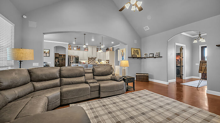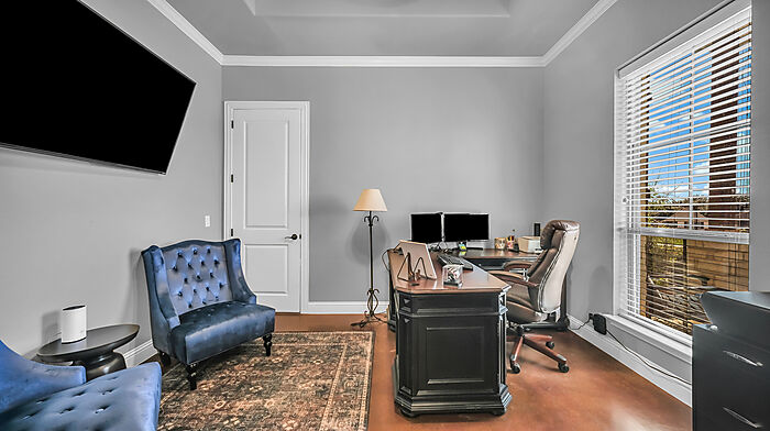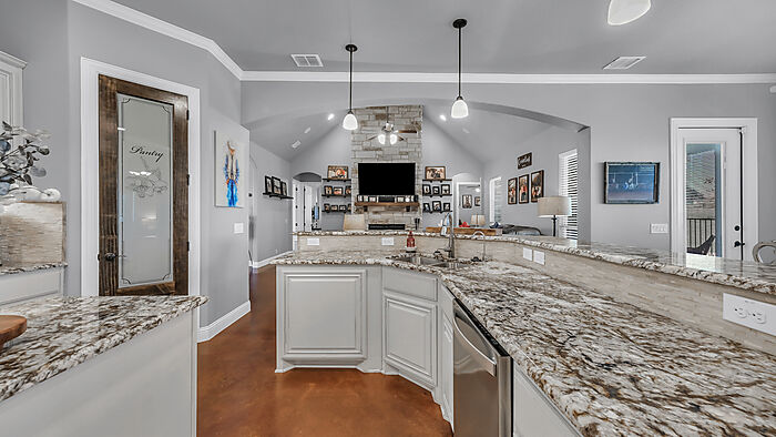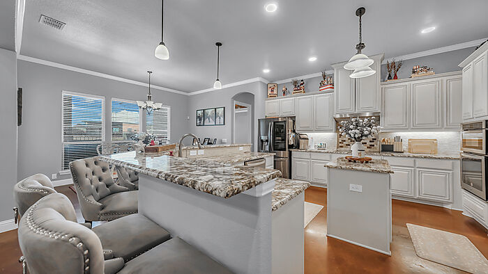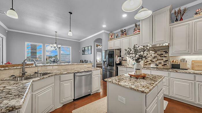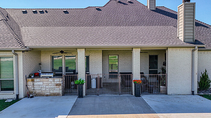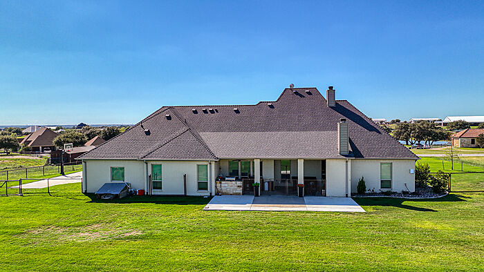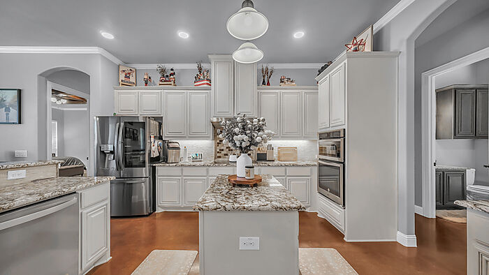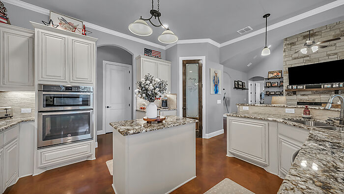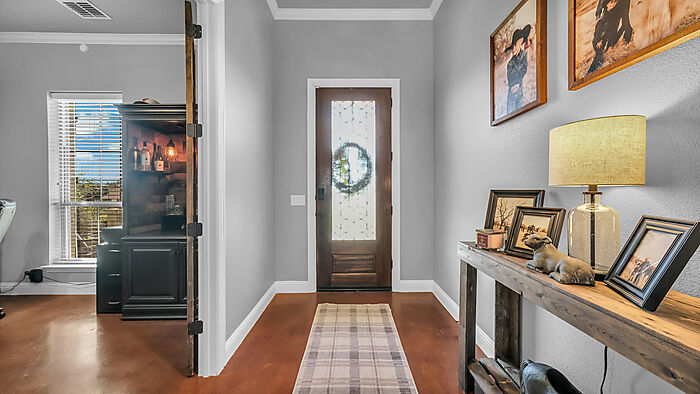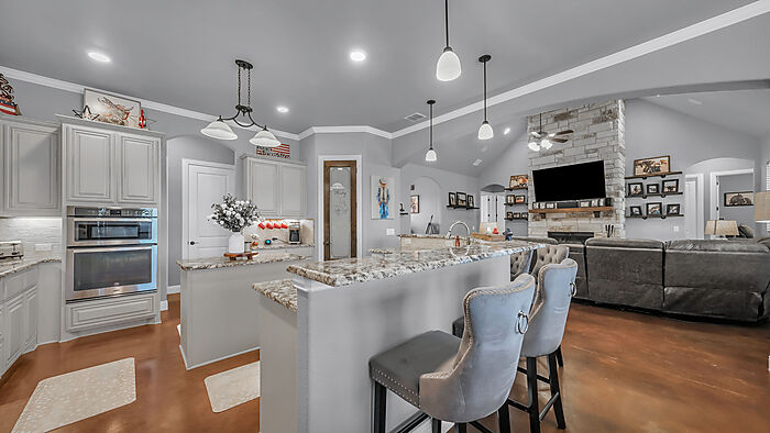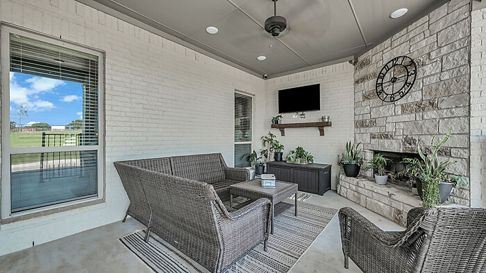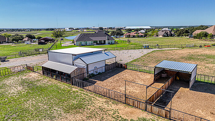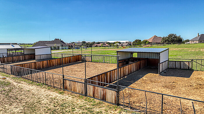 | Nestled in the coveted Silverado on the Brazos, this stunning home offers an exceptional blend of style and comfort. The open floor plan and soaring vaulted ceilings create an inviting space, perfect for family gatherings and entertaining guests. A spacious breakfast area seamlessly transitions to a covered outdoor living retreat, fully equipped with a grill, fireplace, and fridge, ensuring year-round enjoyment. The bedrooms in this home are top notch! This property is truly unique – it’s the only one in Haciendas with a separate lot attached that allows horses. With two access points, the back pasture is easily reachable from both Silver Saddle Circle and the backyard. It also features a 36x12 loafing shed, which can be left open or divided into three stalls, offering flexible use. Additionally, there's an AC-equipped tack room, making it even more convenient for those who love equestrian activities. This property offers a rare combination of luxury living and practical functionality! |