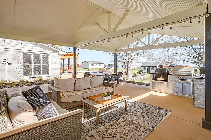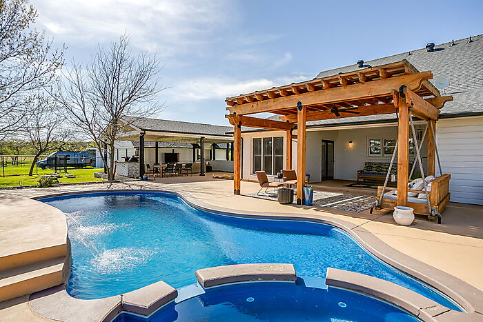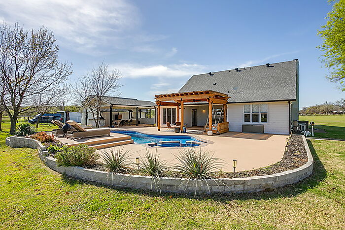 | Experience the perfect blend of country living & modern convenience w this beautifully updated farmhouse on 4± acres just minutes from town. Located 10 minutes from Old Town Burleson & H-E-B & 8 minutes from Chisholm Trail Pkwy, this property offers peaceful surroundings w an easy commute to Fort Worth. The charming farmhouse features standout curb appeal w black shutters, painted gutters, & a large wraparound porch perfect for relaxing. Inside, the 3bed, 2.5bath home offers a spacious floorplan w a large living area, plantation shutters, wood-burning fireplace w custom mantel, formal dining, breakfast room, mudroom, & office w built-ins currently used as a climate-controlled wine room. The kitchen overlooks the backyard & features double ovens, farmhouse sink, marble countertops, abundant storage, & herringbone tile floors. The first-floor primary suite includes a jetted tub, separate shower, & dual sinks. Upstairs is 2bed w large closets & a full bath. Step outside to a backyard retreat featuring a fiberglass pool (2022), stained concrete decking, covered outdoor living area w vaulted ceilings, outdoor kitchen w grill and refrigerator, & cedar pergola w fan & custom daybed swing. Enjoy the sunsets & evenings by gathering around the custom fire pit area w wood decking, an ideal place to end the day roasting s’mores or sharing stories. Beyond the pool area, is a custom enclosed cedar garden w raised beds & built-in misting system, perfect for growing your own fruits & veggies. The acreage is beautiful w pipe & no-climb fencing, an additional cross-fenced pasture w custom gates & a shelter w dedicated feed room for livestock. There is a separate workshop w electricity ideal for hobbies, projects, or additional storage. Recent updates include full exterior paint and a new 30-year composition roof (2025). This is the perfect opportunity to enjoy the charm of country living without sacrificing location, comfort, or convenience. WILL BE SOLD FULLY FURNISHED. |
