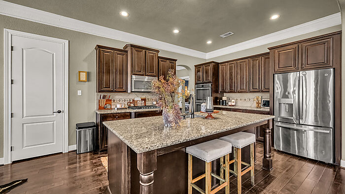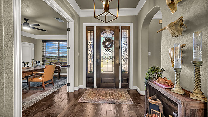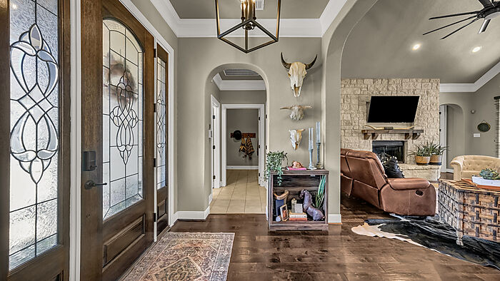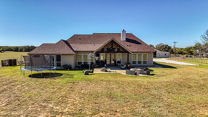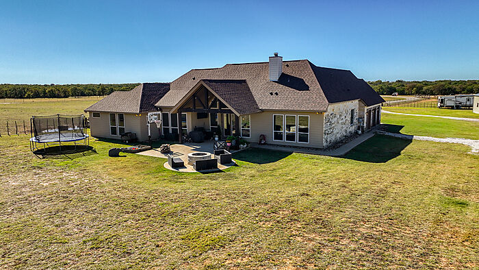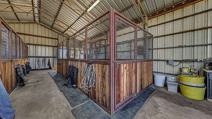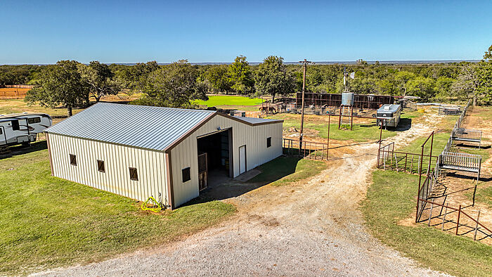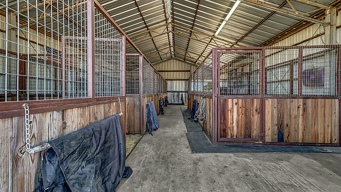 | This property carries undeniable value with its easily accessible location just off US Hwy 281. Set on 48.5 acres, the drive through the property takes you past a fully stocked pond and peaceful hunting area, often home to grazing deer, before arriving at the beautiful Austin Stone residence and professionally designed training complex. The facility is thoughtfully designed for flexibility and functionality, featuring 35 large stalls that can be easily divided into up to 80 smaller stalls, allowing the layout to adapt to a variety of operational needs. Additional improvements include six covered turnout runs, four fully fenced pastures, a covered round pen with premium footing, a 150’x250’ roping arena, five pipe cattle pens (two with automatic waterers), three 50-amp RV hookups, a dedicated shavings storage barn, gated entrance, and more. Constructed in 2024, the main barn offers a 3-horse wash bay, LED lighting throughout, and a beautifully finished programmable 6-horse Priefert panel walker. A dedicated 30’x80’ equipment storage barn provides ample space for trailers, tractors, and operational equipment. The second barn includes 10 additional stalls with a concrete alley, wash bay, and six covered runs, making it ideal for show horses, mares, or yearlings, with convenient access to the roping arena and cattle pens. Follow the long, scenic drive to the secluded 2,700+ square foot residence, offering a comfortable retreat after full days around the facilities. The home features four bedrooms, three and a half baths, an oversized two-car garage, granite countertops, a spacious kitchen island, gas stove, versatile office or dining space, and a cozy rock fireplace. Step outside to the covered back patio, wired for an outdoor TV, and enjoy views of tree-lined pastures and a rock fire pit — the perfect setting to unwind or entertain. |