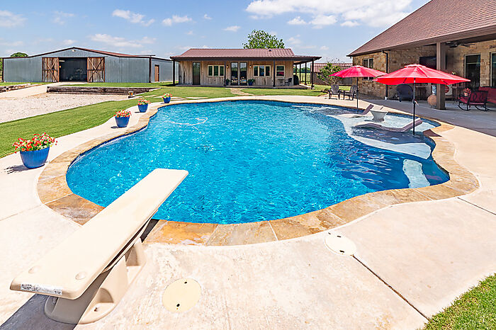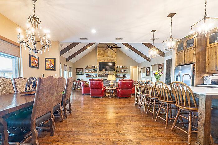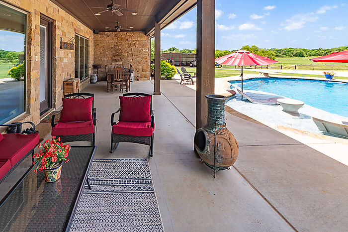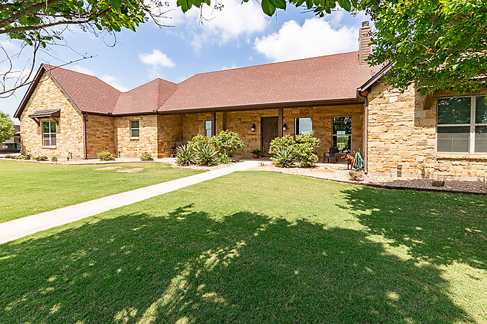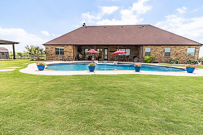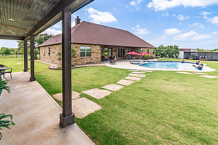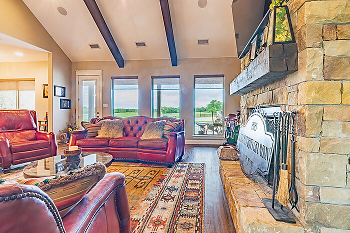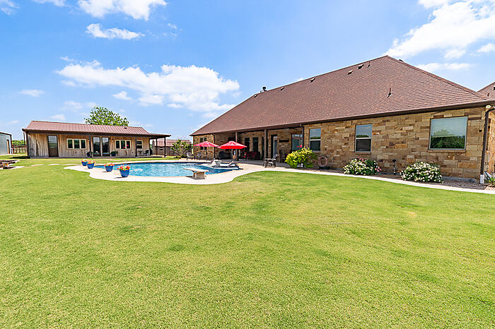 Beautiful level to a gently rolling coastal bermuda and open to thick trees. A custom 4,249 sf 4-3.1-2 sandstone home with pool. Entertainment & pool house. Truck, trailer, & equip storage, stone roping arena, 5-stall barn, steel cattle pens, pipe entrance, extensive pipe fencing. Water well & system, 2 ponds, deer and turkey, $3,795,000.00
