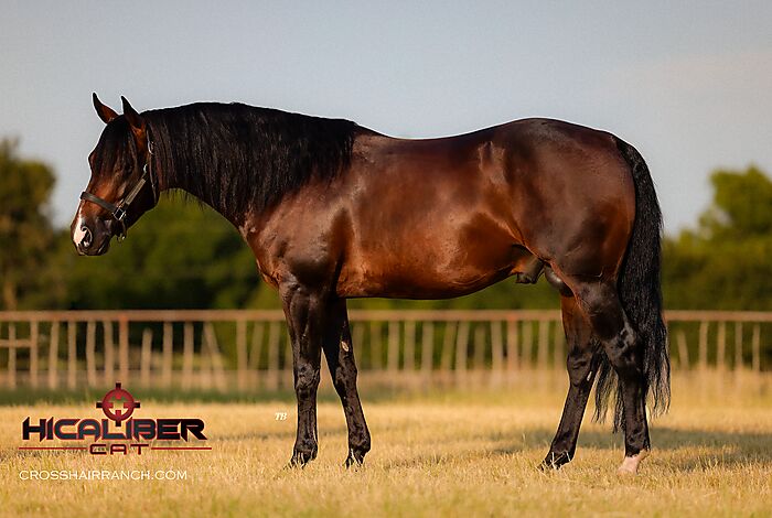 2019 AQHA BAY STALLION, 7 panel negative, llifetime earnings of 150k+ and he is still showing! He is cowy and has cow smarts, he is athletic, he is a charmer and has a quiet personality! He can be tied by a mare and never says a word. Crosshair Ranch bred him privately in 2024, and his first foals arrive this year!! He is standing for the public for the first time in 2025, too! Check him out at: https://www.crosshairranch.com/hicalibercatstallion#google_vignette.