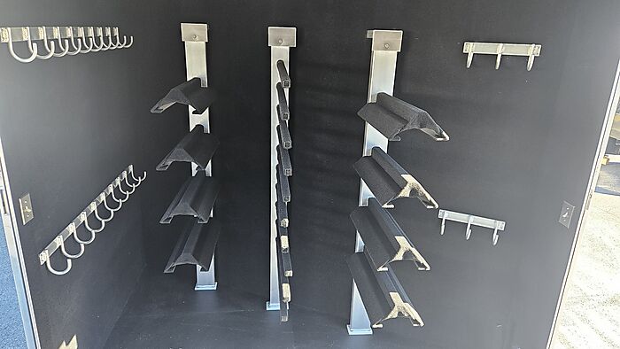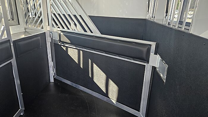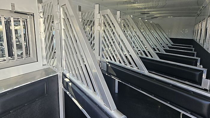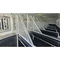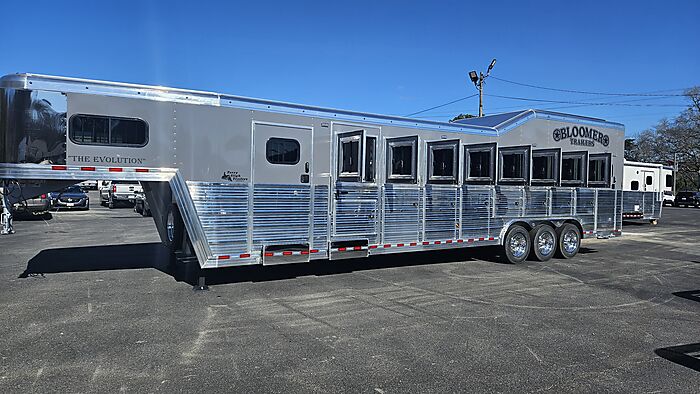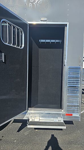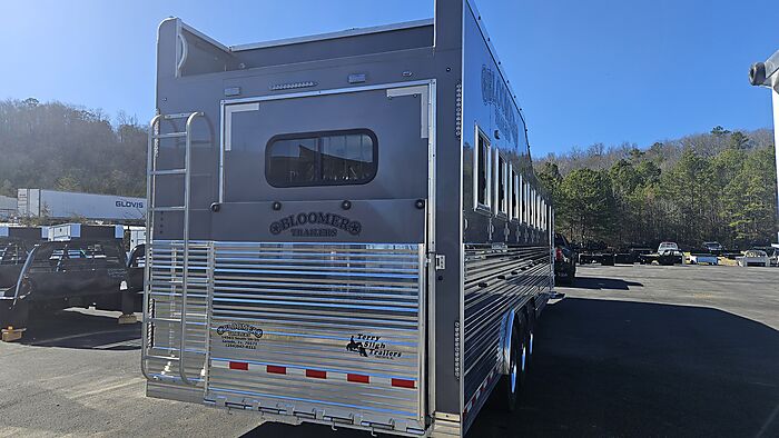 Brand New 2025 Bloomer 8 Horse Trainer trailer! Brand new Charcoal skin color! drop doors on head and tail with shocks to hold open feed doors, mangers,integrated hay pod, front stud wall, escape door, 19.5in Alcoa wheels on three 8k lb axles, rear ramp, left corner broom closet, pass thru dressing room with boot box and tons of storage, dual hydraulic jacks on front, electric over hydraulic brakes. Call or text: Andrew 205-915-9858 or David 205-559-3031 or email djohnson@terryslighauto.com or message us on Facebook.