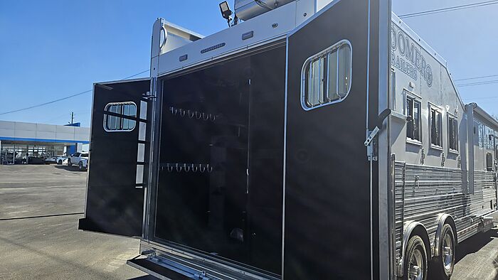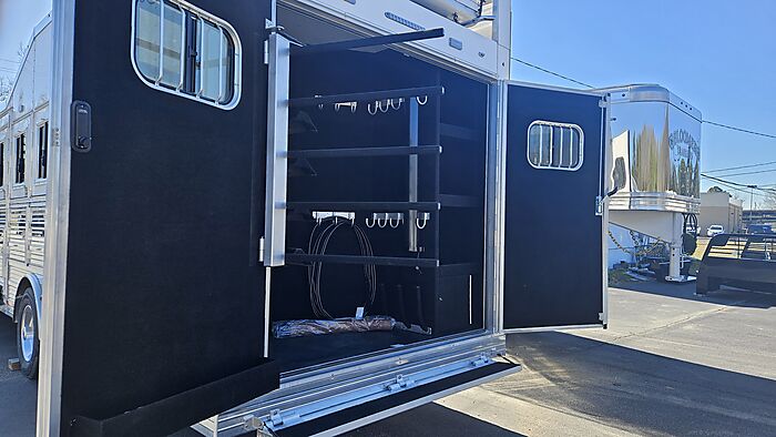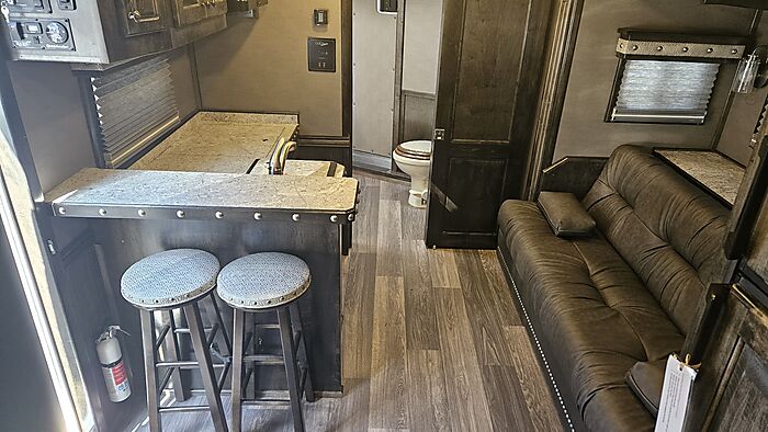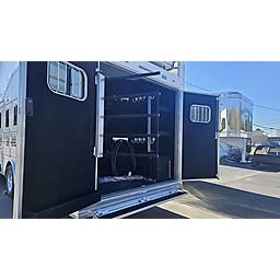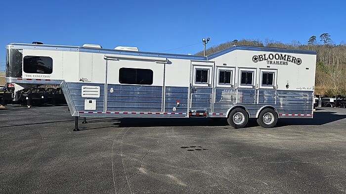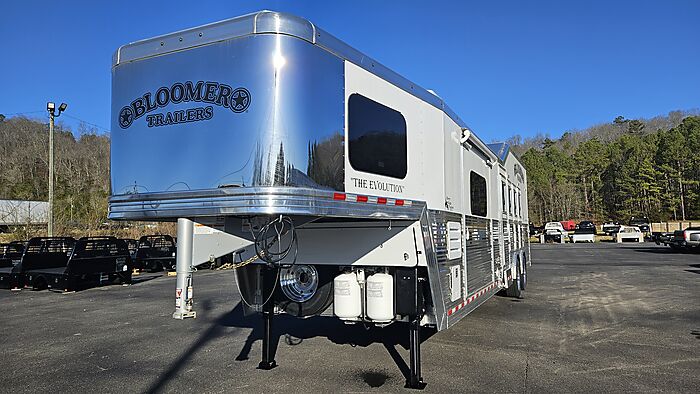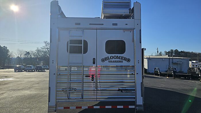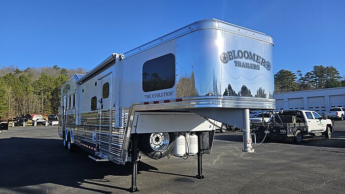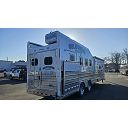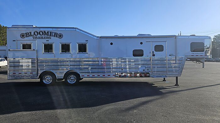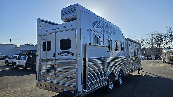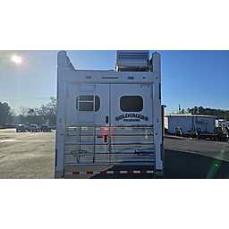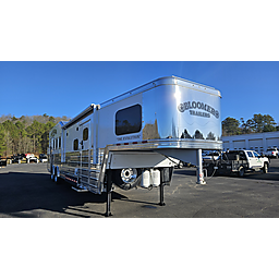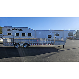 Brand new 2025 Bloomer 4 Horse LQ PC Load with Outlaw Conversion, two spread 10k lb axles with 19.5in alcoa wheels, 8ft wide 7'6 tall, drop doors on head and tail with shocks on feed doors, integrated hay pod, single a/c, gas generator, escape door, full rear tack with shelves, medicine cabinet and 110plug! Mangers, stud wall, keyless entry, 6ft slide out, sleeper sofa, 60gal freshwater tank behind sofa, huge kitchen area with raise bar and barstools, pass thru door in bathroom, dual front hydraulic jacks, electric over hydraulic brakes.