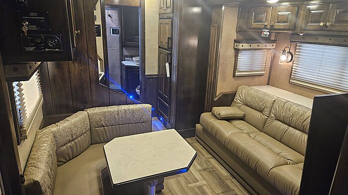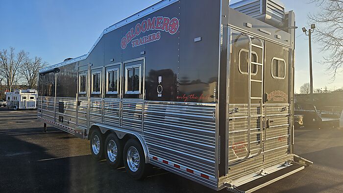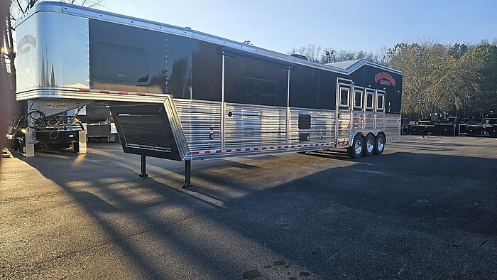 Brand new 2025 Bloomer 4 Horse LQ with Outlaw Conversion, PC load, Full rear tack with outlet plug, Enclosed front end, Black with all Red Logos, Drop doors on head and tail with shocks on feed doors, mangers, integrated hay pod, Onan gas generator, 3 8500lb axles with 19.5 Alcoa wheels, 2 a/c units, 17'10 sw, stud divider, escape door, Sleeper Sofa, extra 60 gallon fresh water tank behind the sofa, Corner Booth, central vac system, Pantry with double rods and shelves, hinged tv door with storage, additional generator switch in bedroom, huge closet in bathroom, shower has corner bench seat, Call Andrew at 205-915-9858 or David at 205-559-3031 ๏ธ๏ธ๐ฅ๏ธ๐ฅ๏ธ๐ฅ๏ธ๐ฅ๏ธ๐ฅ๏ธ๐ฅ๏ธ๐ฅ๏ธ๐ฅ๏ธ๐ฅ๏ธ๐ฅ๏ธ๐ฅ๏ธ๐ฅ๏ธ๐ฅ๏ธ๐ฅ