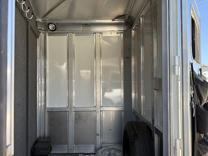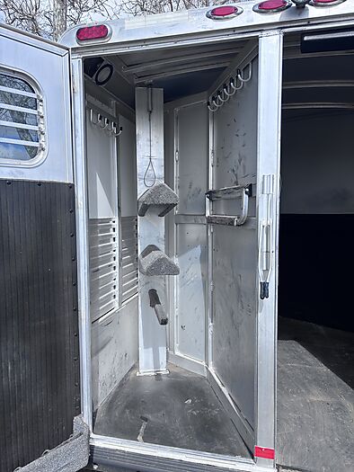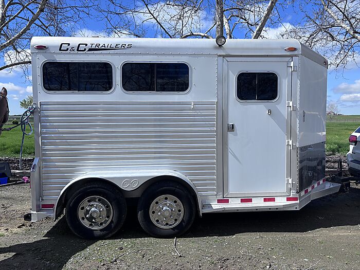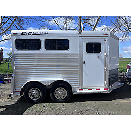 2008 C&C bumper pull 2 horse slant load trailer. Great condition. Not used much. All the lights work inside and out. drop down feed doors with a drop down bar door for window. Slide windows on the rear. Padding inside has no rips or tears. Tie hooks on both sides . This company was started by someone who worked for 4 Star Trailers. He was only in business for a short time. Has many of the special features of a 4 star trailer. Non collapsable back tackroom and front tackroom. Saddle rack can be positioned in either one. Very clean and well maintained.