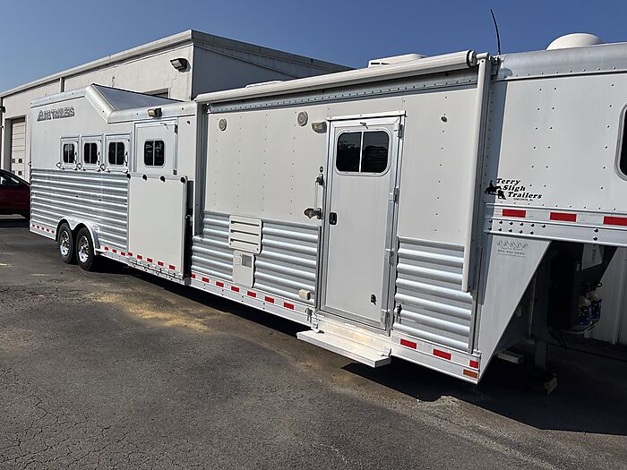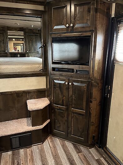 2016 Elite 4 Horse with 14ft sw and Trailboss Conversion. It is a reverse load with full rear tack, integrated hay pod, new Onan generator on top of the trailer, electric over hydraulic brakes and 17.5in wheels and tires. Trailer has all brand new flooring and we will have more pictures once couch and corner bench are back from being recovered. This trailer has been totally gone through and is ready to hit the road without spending a fortune!