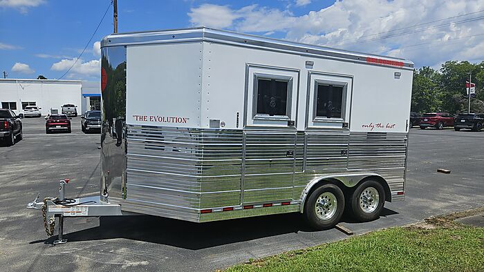 2 Horse slant load, with mangers, drop doors on head and tail, small dressing room up front, 16in Alcoa wheels