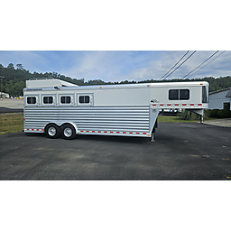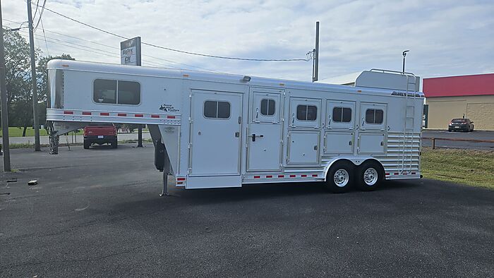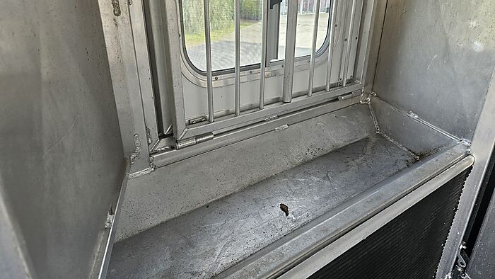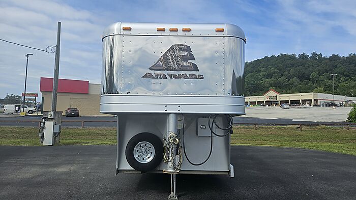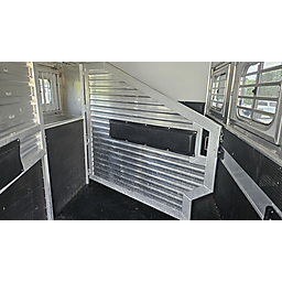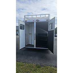 2016 Elite 4 horse trainer trailer, has big front dressing room with boot box, drop doors on head and tail, mangers, stud wall, 16in aluminium wheels, hydraulic jack, hay rack, escape door