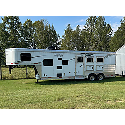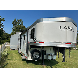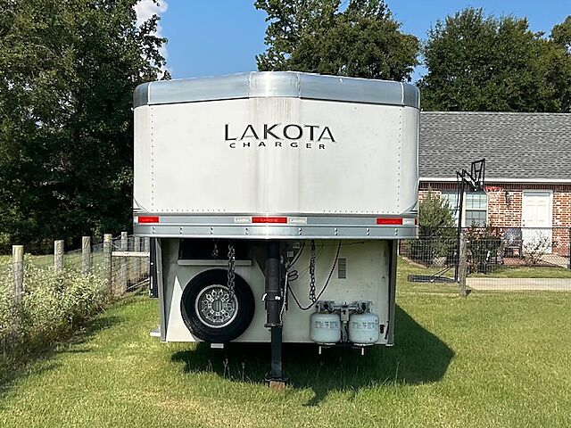 2023 Lakota Charger - ( LIKE NEW ) - Living Quarters - 3 Horse - 8' Wide / 7'6" Tall - Fold Down Sofa / Sleeper on Riser - Closets - Drop Down Windows Both Sides - Mangers - Electric Awning - 50/50 Rear Door w/Tack - Upgrade Mattress - Many Other Options!