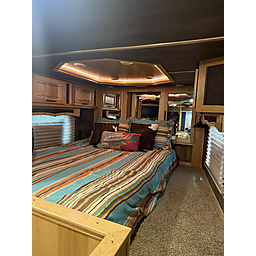 - 3 Horse slant load - roomy stalls, large drop down windows and mangers. Escape door as well as a pass through door into the living quarters. Rear load with ramp. 8k torsion axels.