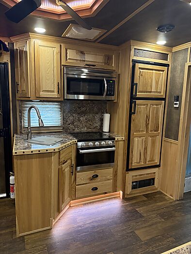 -Gorgeous Interior- hardwood Hickory cabinetry, upgraded finishes such as crown molding. Hay pod with generator.
