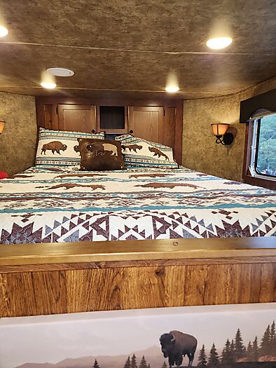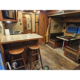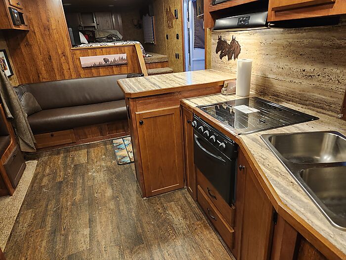 Dinette in slide, couch on riser wall