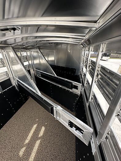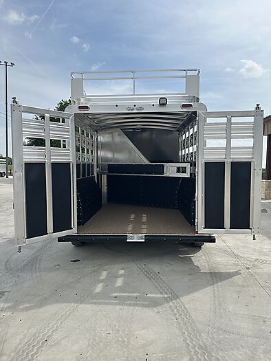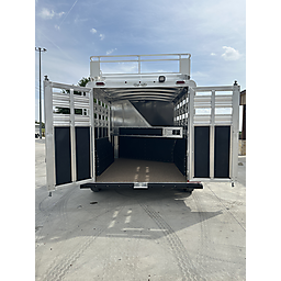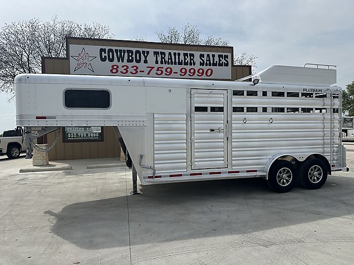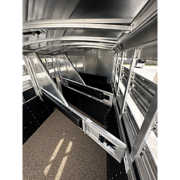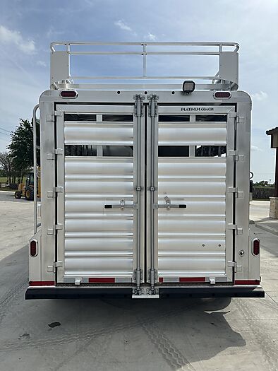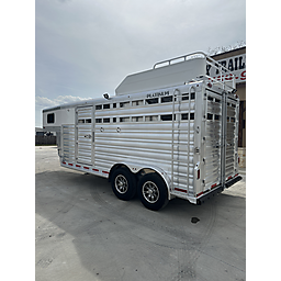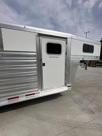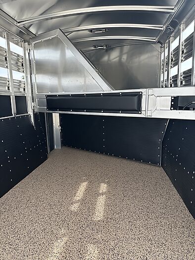 2026 Platinum 3 Horse Stock combo = 17' Long x 7'6" Wide x 7' Tall, 5200# Rubber torsion axles, Electric brakes, 16" tires, Aluminum mod wheels, Spare tire, Single aluminum battery box, 6' Hayrack with ladder, 50/50 Rear gates, EquiFlex poured floor, Plexiglass track, 3 Two-way roof vents, Escape door, Padded dividers, Removable baby panel on first divider, Folding break divider on second, 48" Glued mats on walls, 36" short wall on tack room, 36" dressing room door, 3 Wide based saddle racks, 3 Swing out blanket bars, 15 Bridle hooks, Brush tray on door, Carpet on bulk-head and gooseneck walls, 3 High intensity LED load loights, 4 LED dome lights.