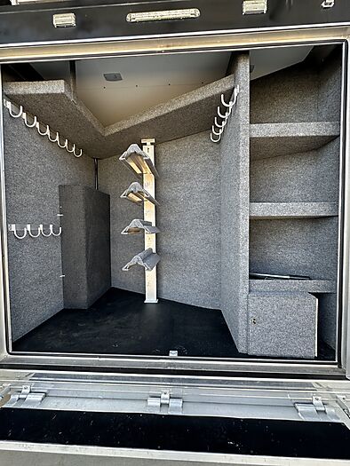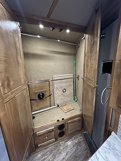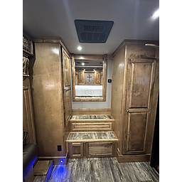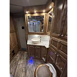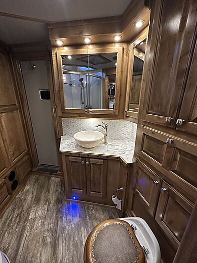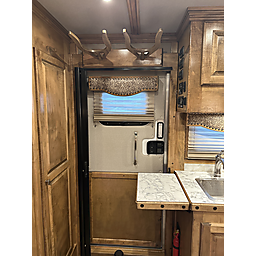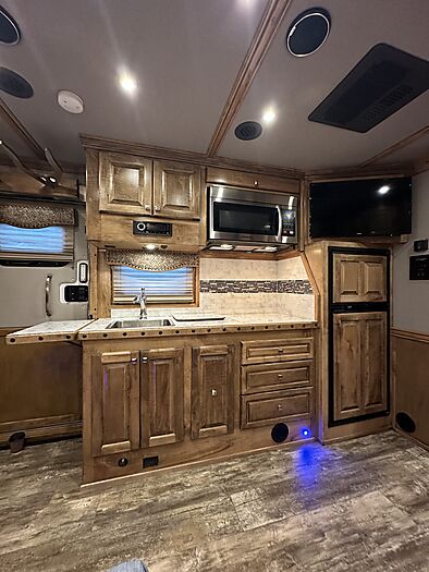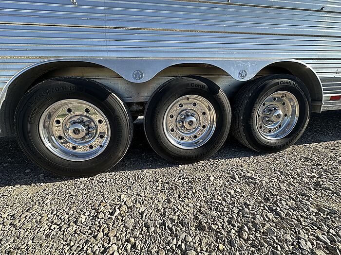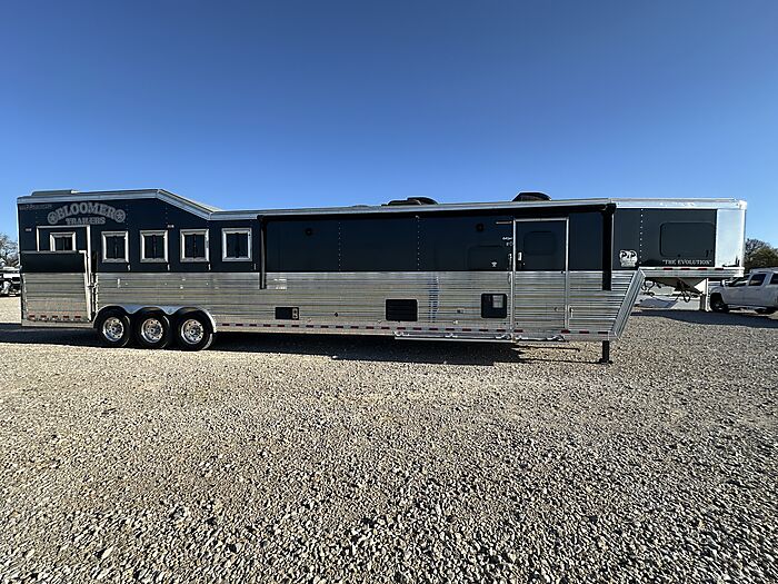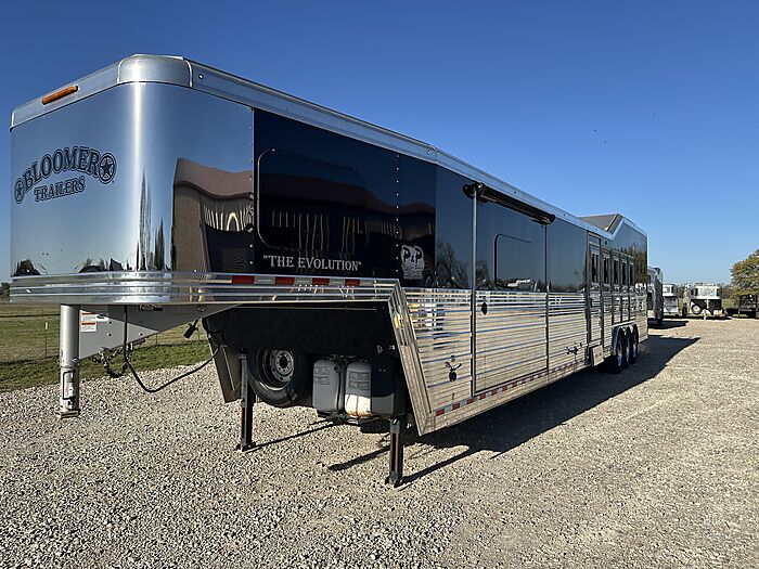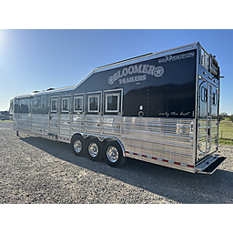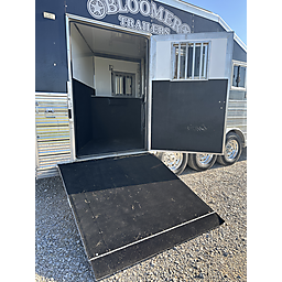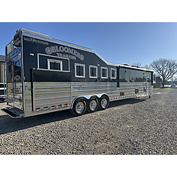 2020 Bloomer 5H P/C load 18' Outlaw interior = 41' Floor x 8' Wide x 7'6" Tall, 8k axles, 19.5" Continental tires on Alcoa aluminum wheels, Elec/Hyd brakes, Spare tire, Dual leg hydraulic jack, Fully integrated hay pod with deck, 7000 Onan generator (388 hours), 30# Propane bottles, Aluminum battery box, Stainless steel nose, Awning, Dual, 50 amp service, Mangers, Drop down windows on both the head and hip side, Full rear tack, 4 Tier saddle rack, Bridle hooks, Carpeted walls and shelves, Swinging 4 Blanket bar on door, Brush tray, Splint boot holders, Flip steps and rear tack, Flip step at escape door and entry, Flip down bench at entry door, LED lights, Side load with ramp, Lined and insulated horse compartment, Rubber mats on floor, Rubber lined walls, Padded dividers, Stud divider on first stall, Escape door, Walk through door to LQ, 18' Outlaw conversion with 7' slide, Immaculate wood cabinetry, Abundant closets and storage, Central Vac, Ducted heat and air, Leather sleeper sofa, Hammered stainless sink, Two burner stove, Convection microwave, 7 cu. Refrigerator, 32" TV and stereo, Tile backsplash, LED lights, Pull-out trash can, Blackout shades, Bowl-shaped bathroom sink, Clothes hamper, Solid-surface shower. Too many options to list. Pictures do not do this trailer justice on the interior. It is like new and has been exceptionally cared for both inside and out. Must see to appreciate all that this trailer offers. This is a consignment, but we will take trades and can offer financing. Delivery can be arranged.