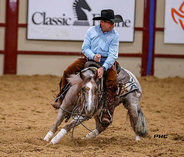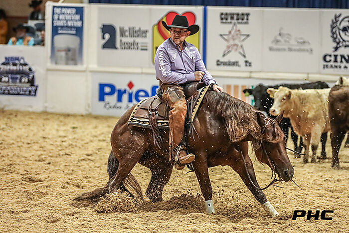 2022 NCHA Futurity Open Semi-Finalist riding Sniperr