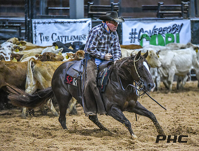 2020 BONANZA CUTTING Open Derby Finalist riding Playin N Fancy Hot (+Novice) and Ethell (+Novice)