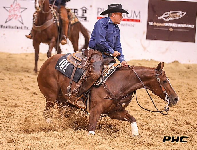 2021 NCHA World Finals Open Finalist riding Clays Little Kit Cat & Crispy Kreme