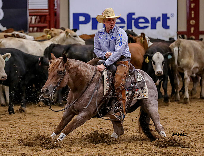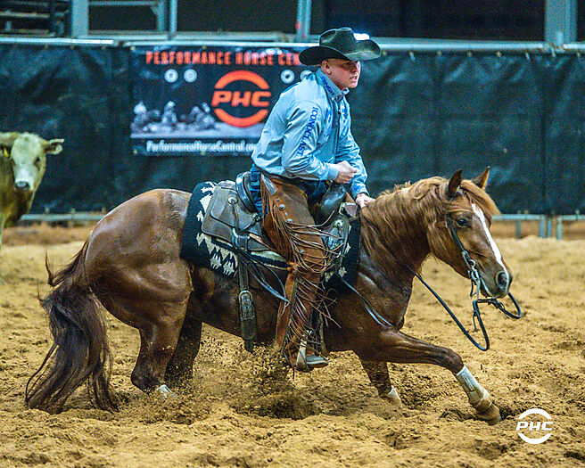 2020 NCHA Futurity Open Semi Finalist riding Intox O Cating