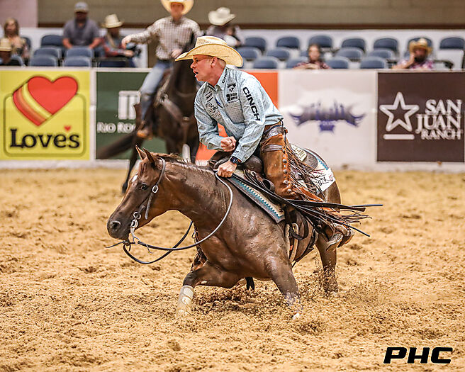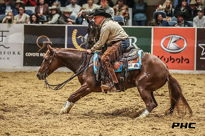 2024 PCCHA Futurity 4 Yo Open Finalist riding Wrapped In Copper