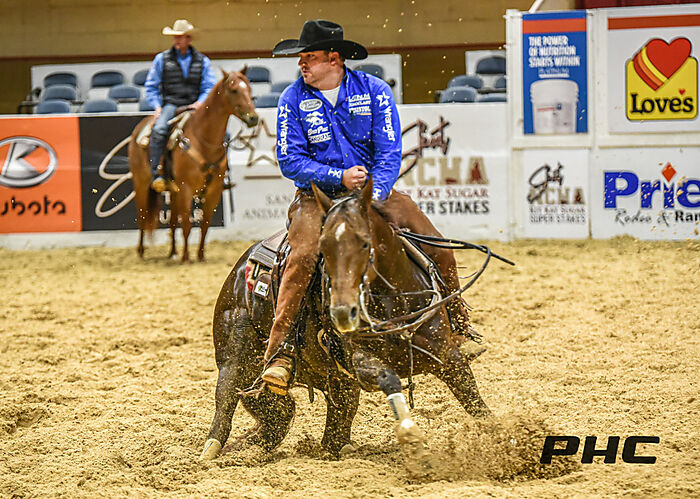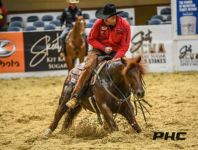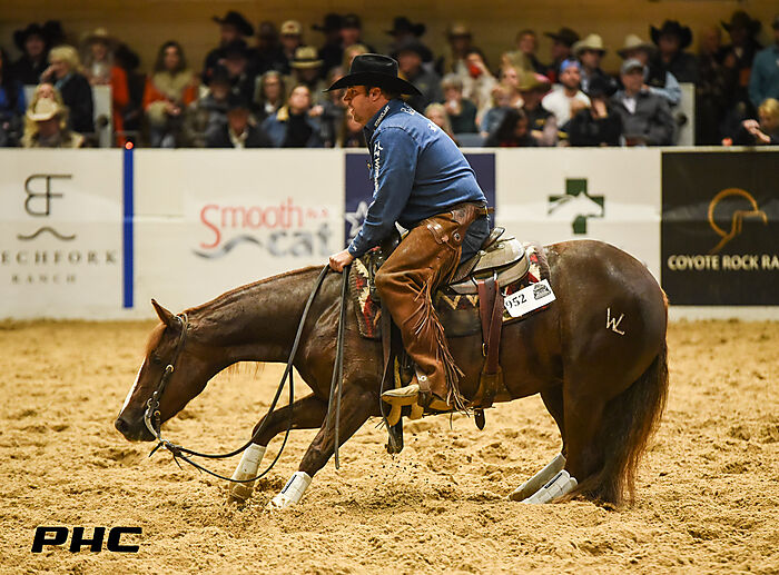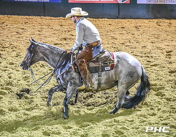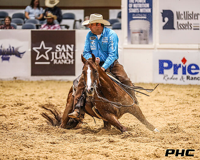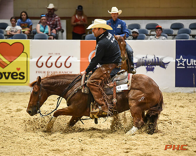 2022 PCCHA Futurity 4 Yo Open Finalist riding Smart Alec Metallic