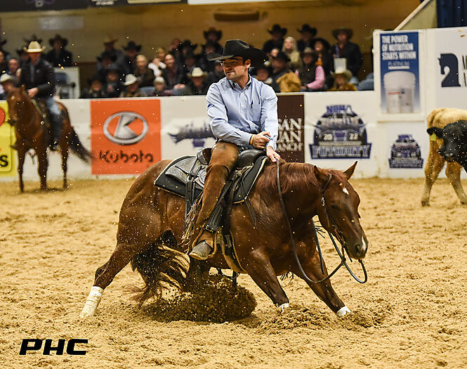 -2024 NCHA Futurity Open Champion riding Too Hot To Tagg